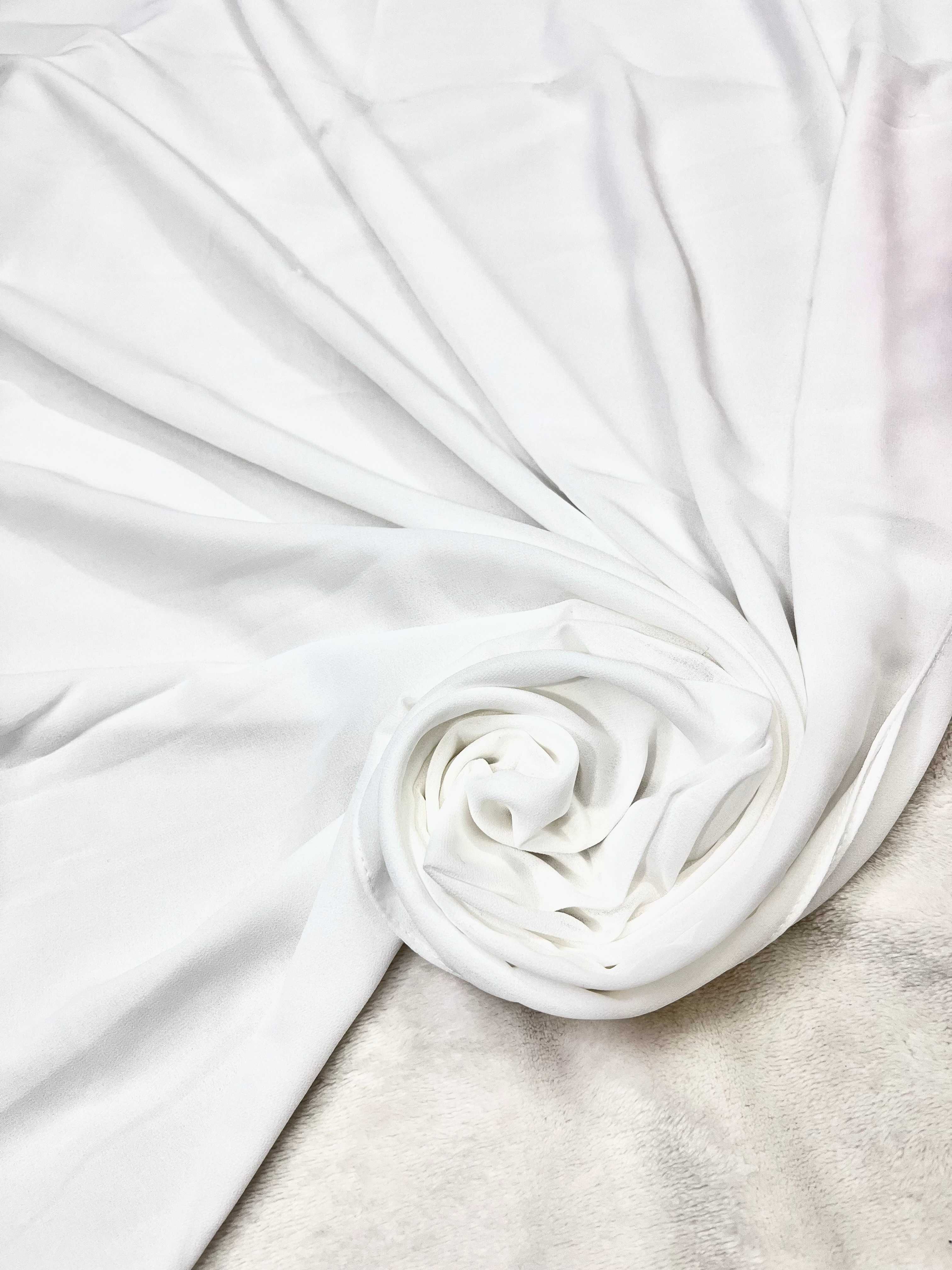 Embrace comfort and grace with this white basic abaya designed to flatter your silhouette. It features baggy sleeves with loop for ease of movement and convenient pockets on both sides. Complete your look with the included white georgette hijab, finished with matching borders for a refined, coordinated appearance.