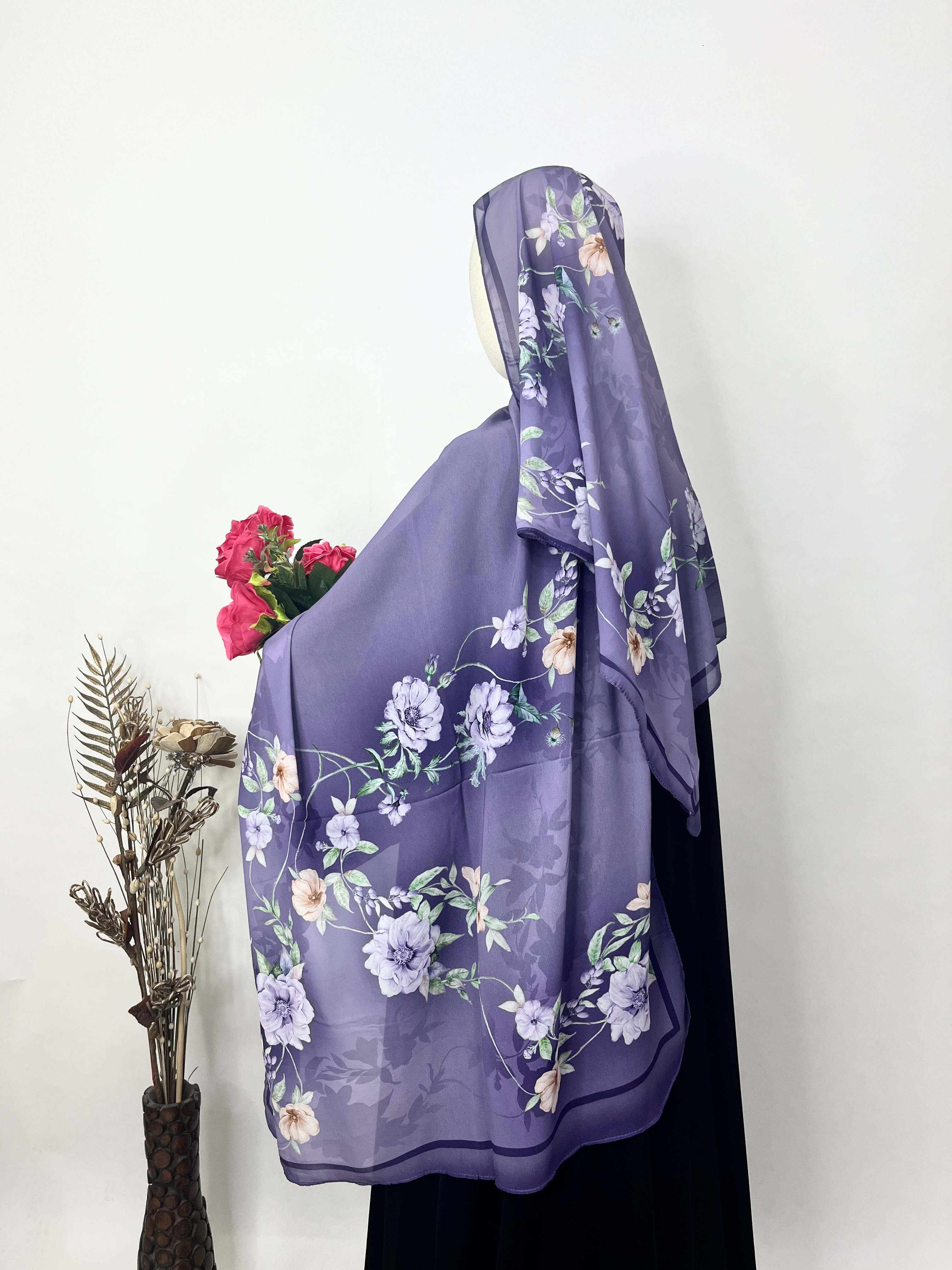 Drape yourself in elegance with our Printed Georgette floral hijab, expertly crafted for generous coverage. The lightweight, breathable fabric ensures all-day comfort while maintaining a refined silhouette. Its fluid drape creates effortless sophistication, perfect for both casual and formal occasions. Experience the perfect balance of comfort, style, and versatility.