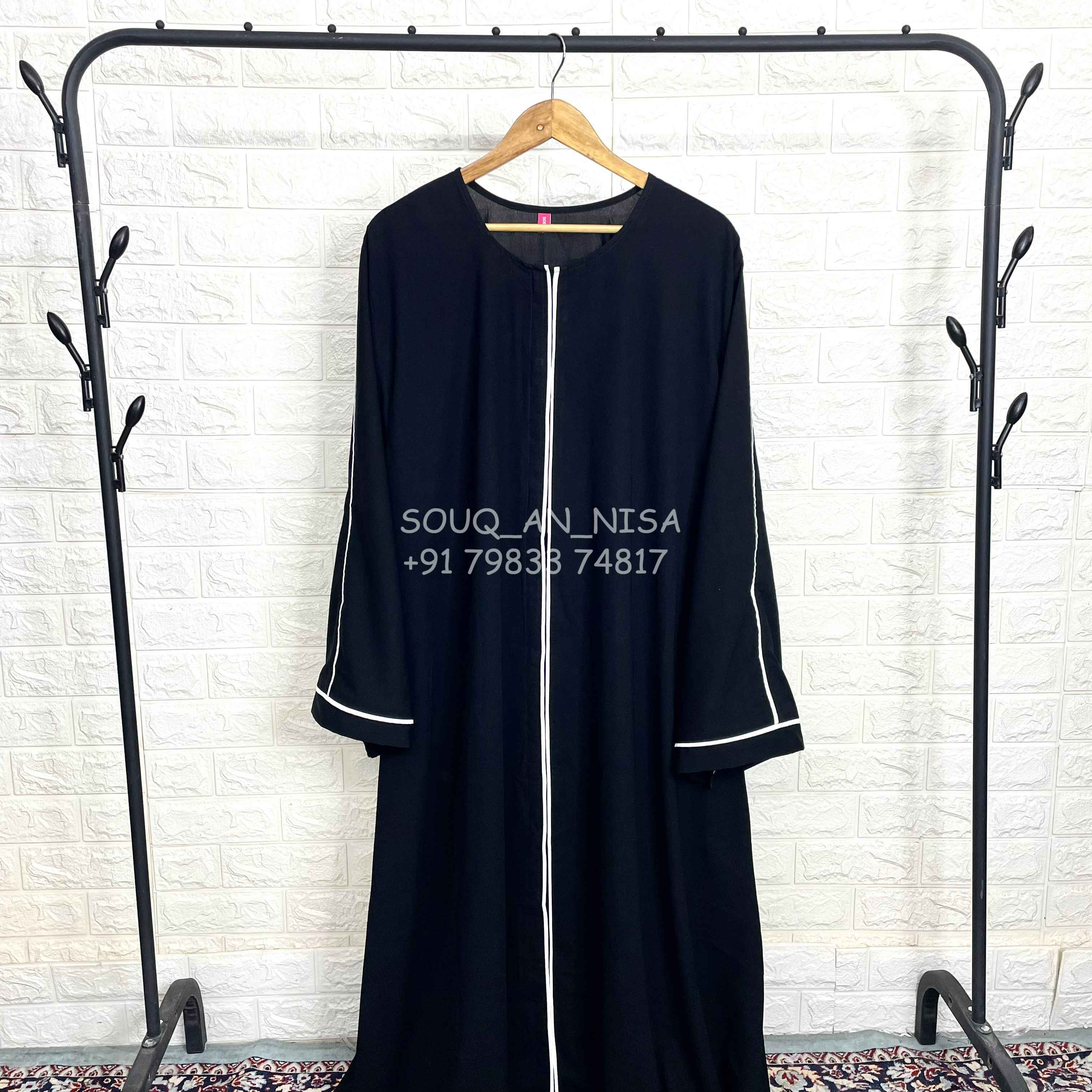 Experience the perfect blend of style and modesty with our Front Open A Line Abaya. The front open design and piping add a modern touch to this classic garment, while providing full coverage for your daily wear needs. Elevate your wardrobe and embrace your style with this versatile abaya!
