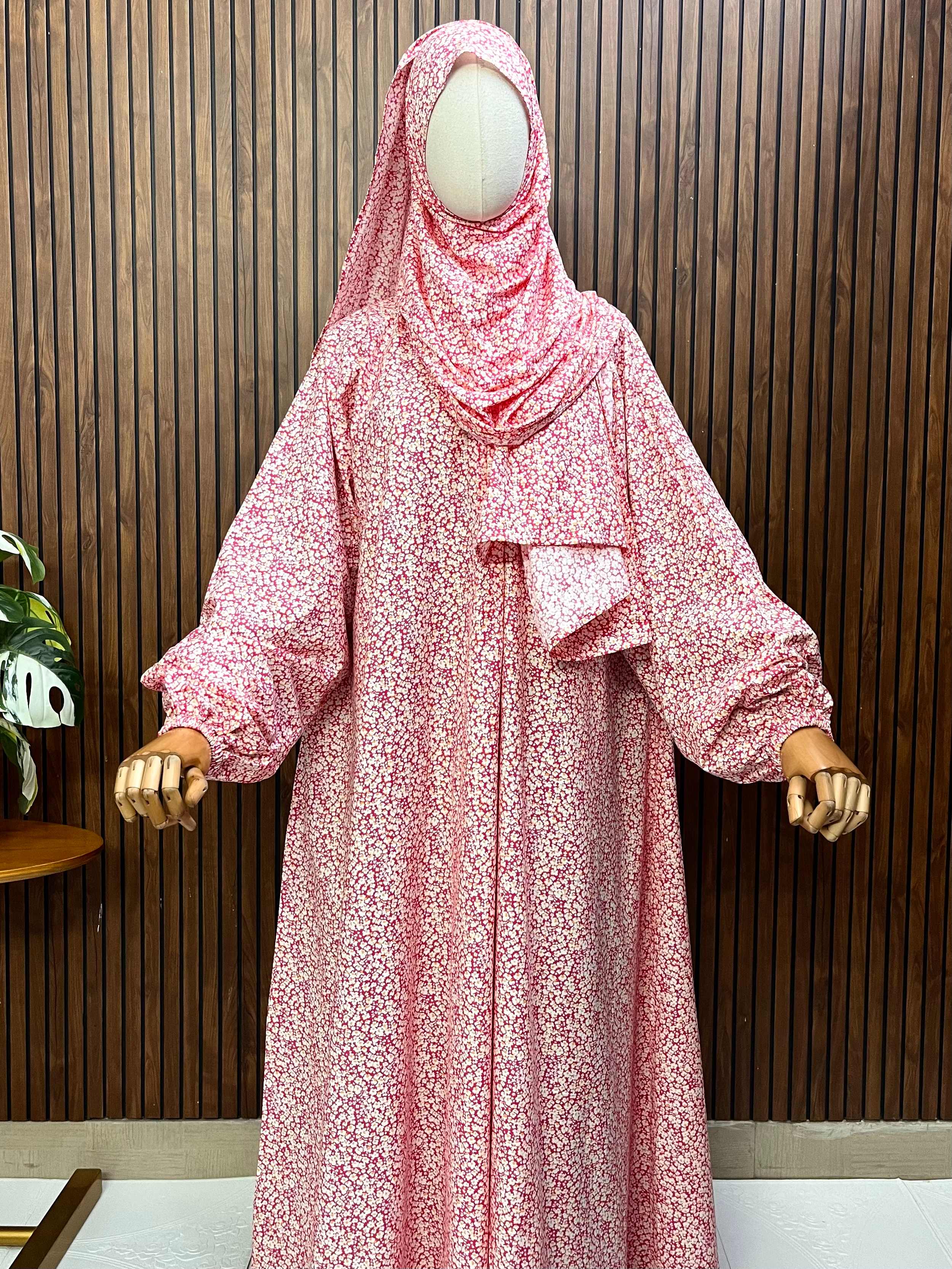 This beautiful, flowing Full Prayer Dress with an attached dupatta is ready to wear and designed to help you modestly cover your awrah with ease.
