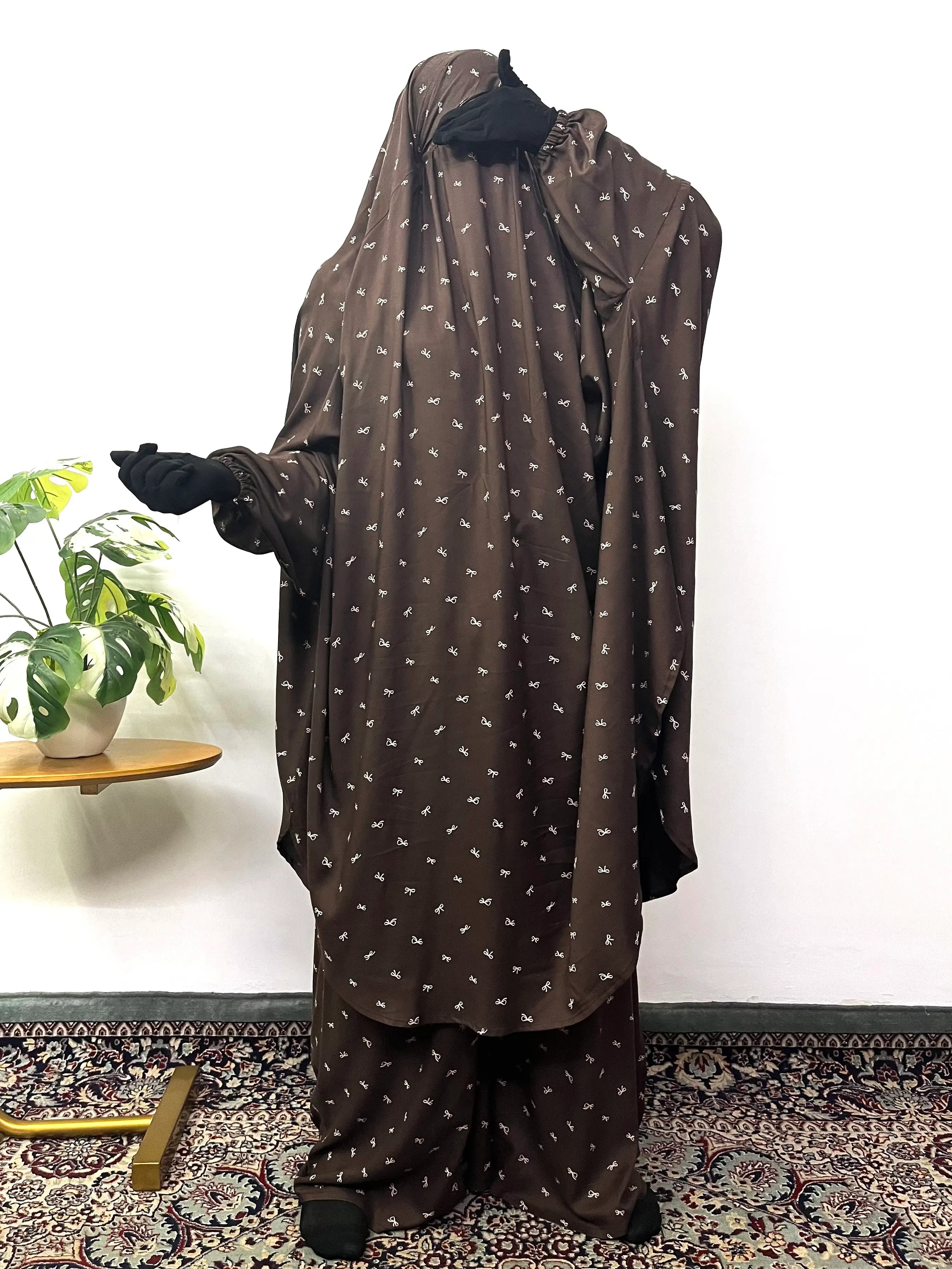 Our Rayon cotton Two Pc Prayer Dress offers a perfect blend of style and modesty. Featuring a broad pant and jilbab with elastic sleeves, this set ensures full coverage and comfort. Ideal for any event, it helps you maintain your faith and fashion with ease.