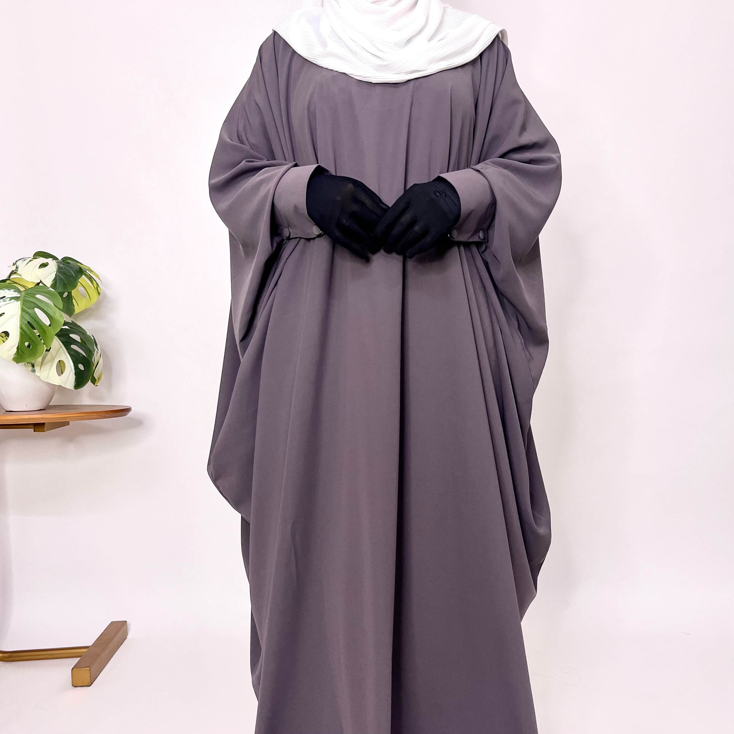 This Lavender kaftan abaya features cuff sleeves and is made from Nida Matt fabric, offering full coverage in a free size fit. A must-have abaya that suits everyone’s wardrobe needs.