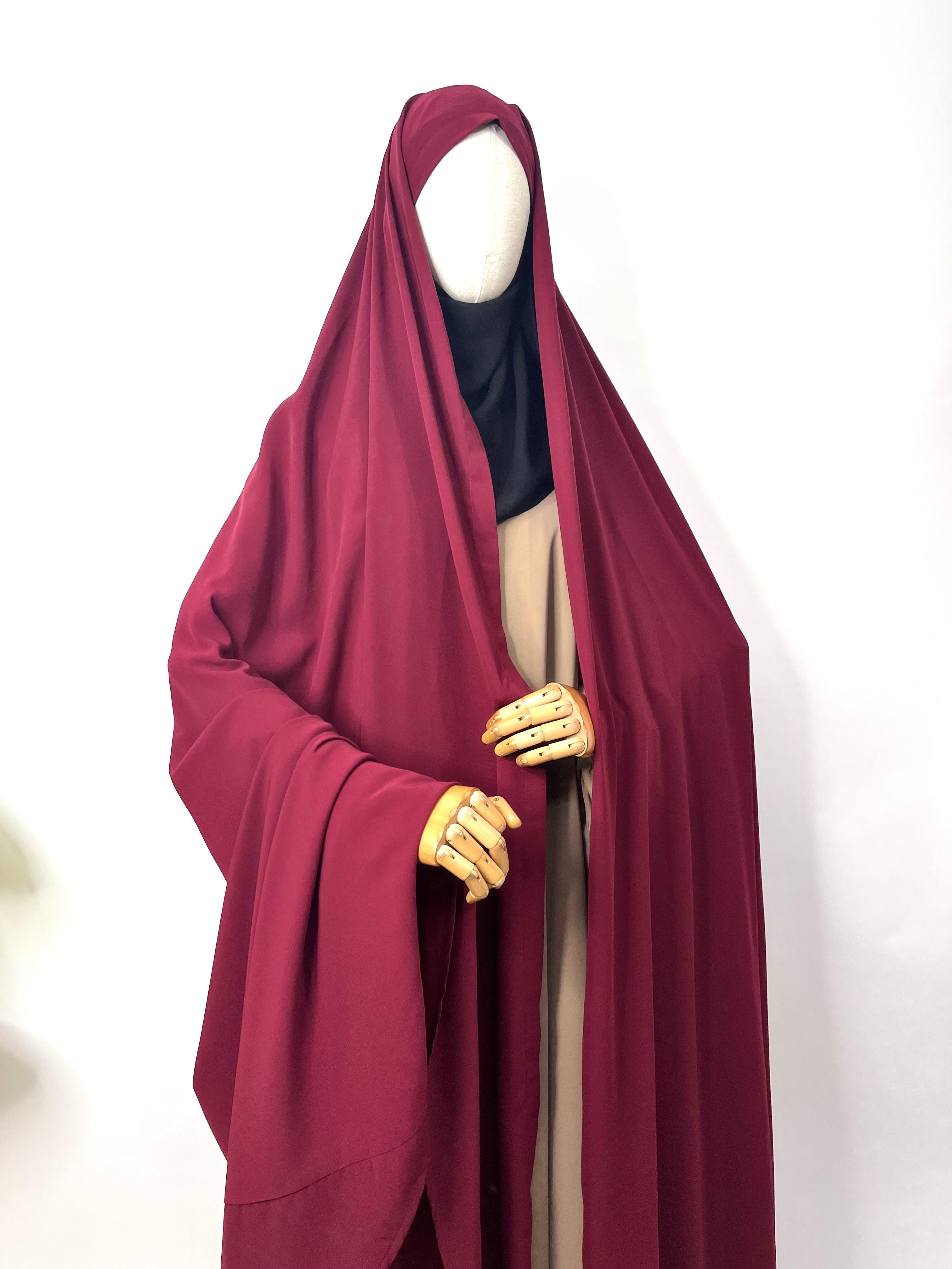 Cover yourself in luxury and sophistication with our Maroon Iraani Chaadar. This sleeveless, front open chadar is made from premium nida matt fabric, providing a soft and elegant touch. Elevate your style with this exclusive piece, perfect for any occasion.