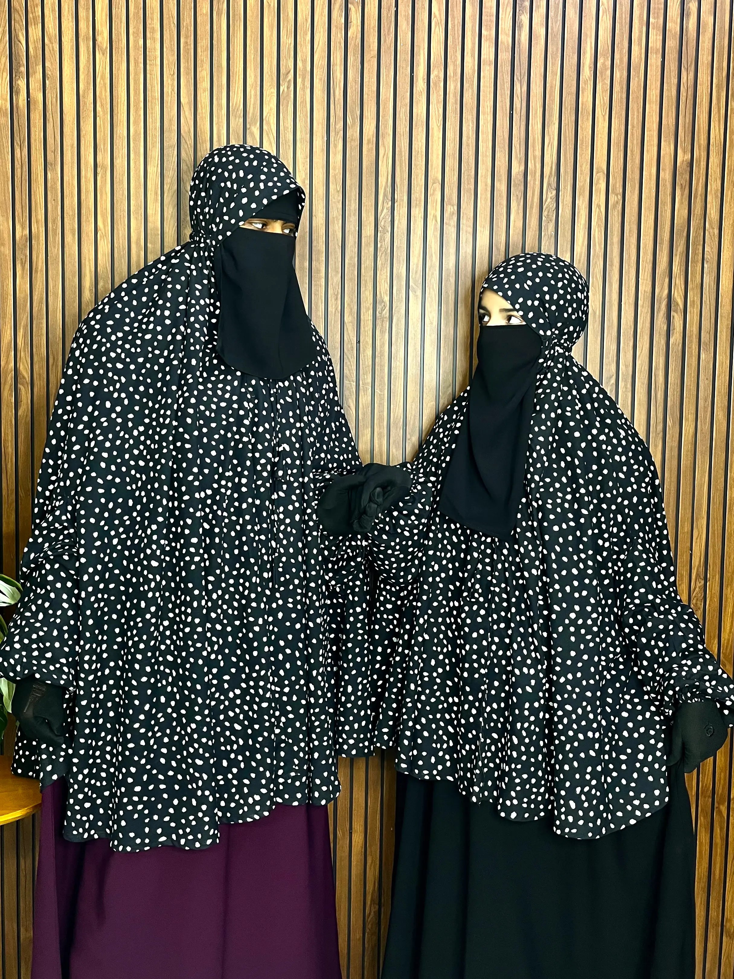 A daughter's desire to emulate her mother is a timeless expression of admiration and connection. This khimar set is engineered to facilitate that bond through thoughtfully matched pieces for both mother and child. Constructed from breathable rayon-cotton with comprehensive sleeve coverage, it delivers versatility across prayer occasions and everyday activities.