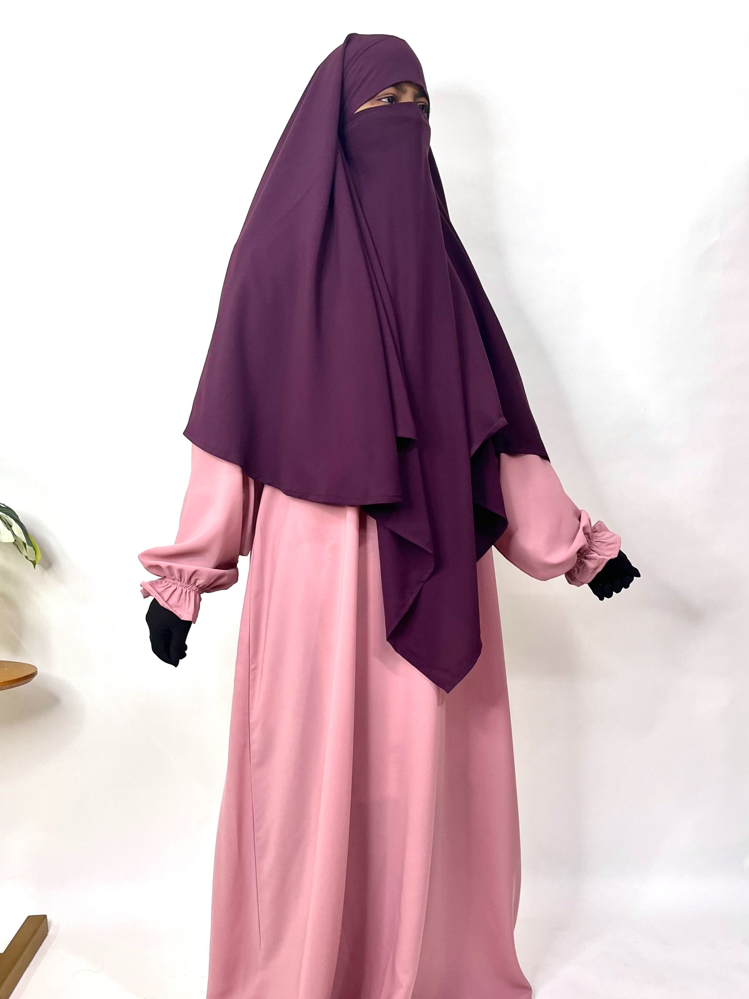 The Pastel Pink Aline Abaya Khimar Set features elegant flower sleeves that add a delicate and feminine touch to your outfit. Designed for comfort and modesty, this set includes a plum diamond khimar that complements the flowing abaya perfectly. Ideal for everyday wear or special occasions, it offers a graceful silhouette that supports your confidence and style with ease.