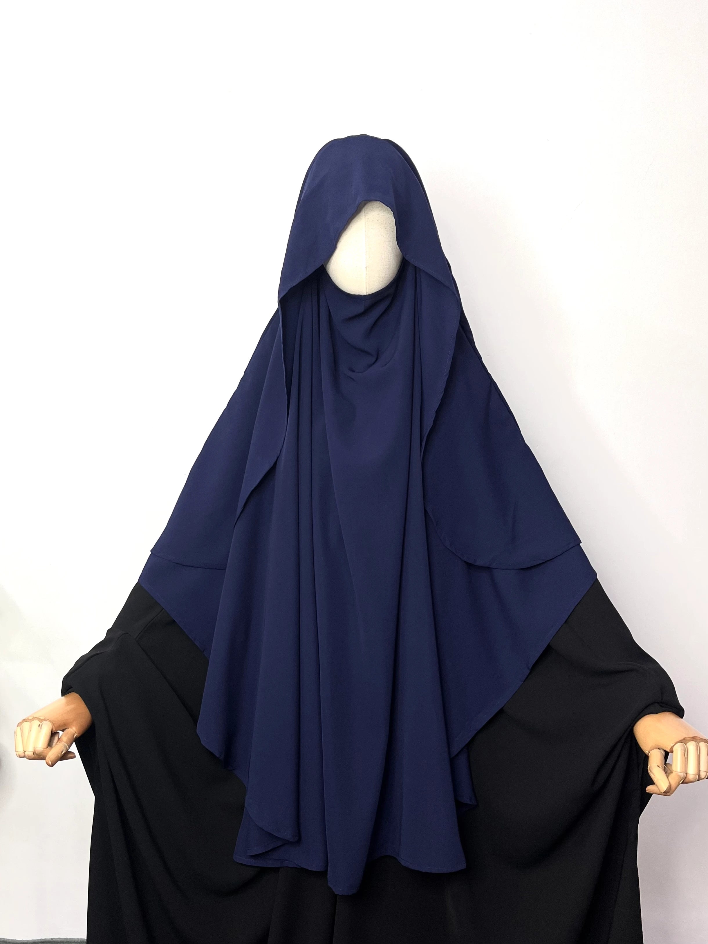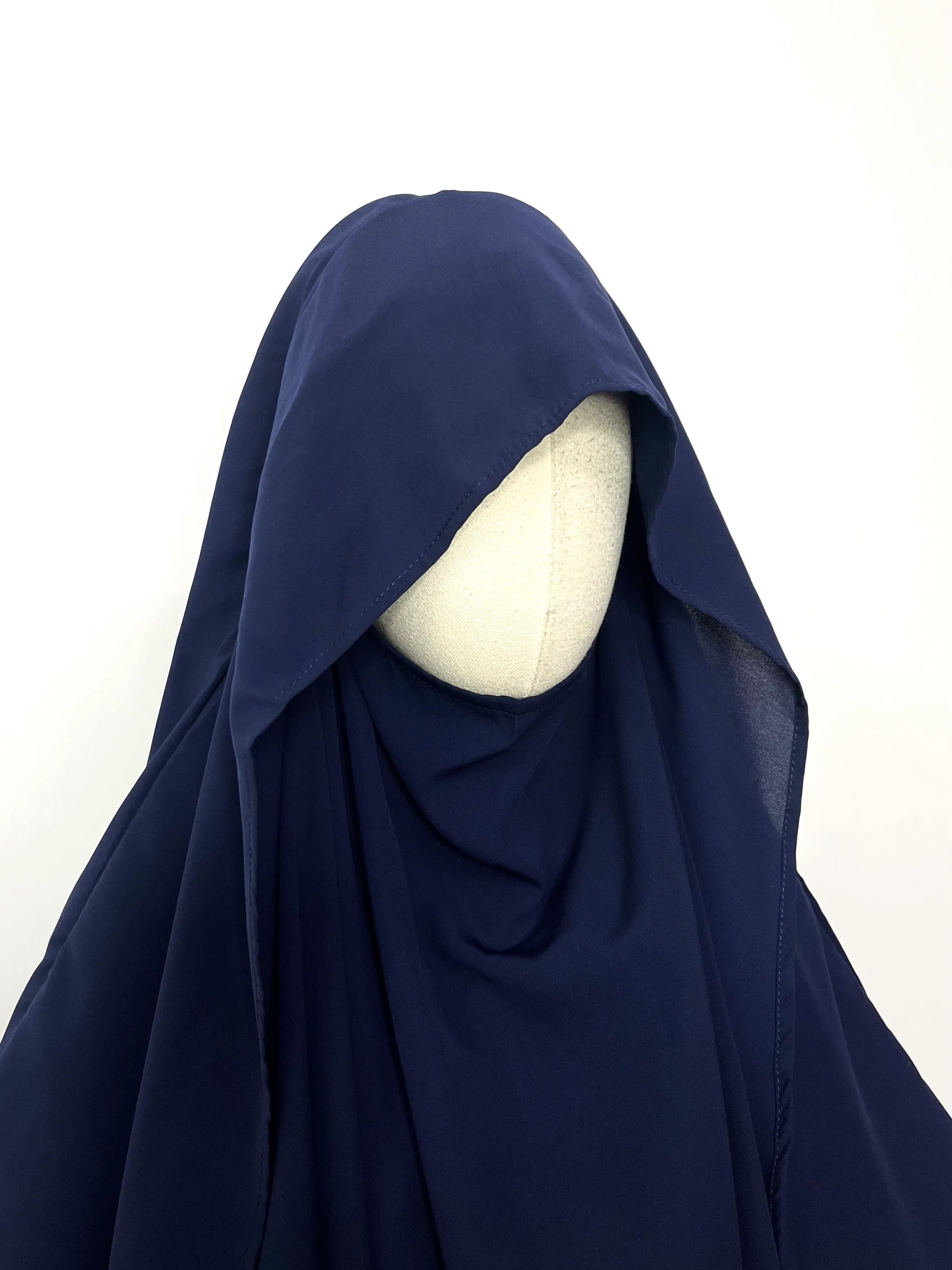 Introducing our new Navy Blue Round With Flap Khimar - the perfect addition to your everyday wardrobe! With its easy-to-wear design and attached niqab, you'll stay on-trend and effortless while staying covered. Say goodbye to complicated hijab styles and hello to simplicity and style.