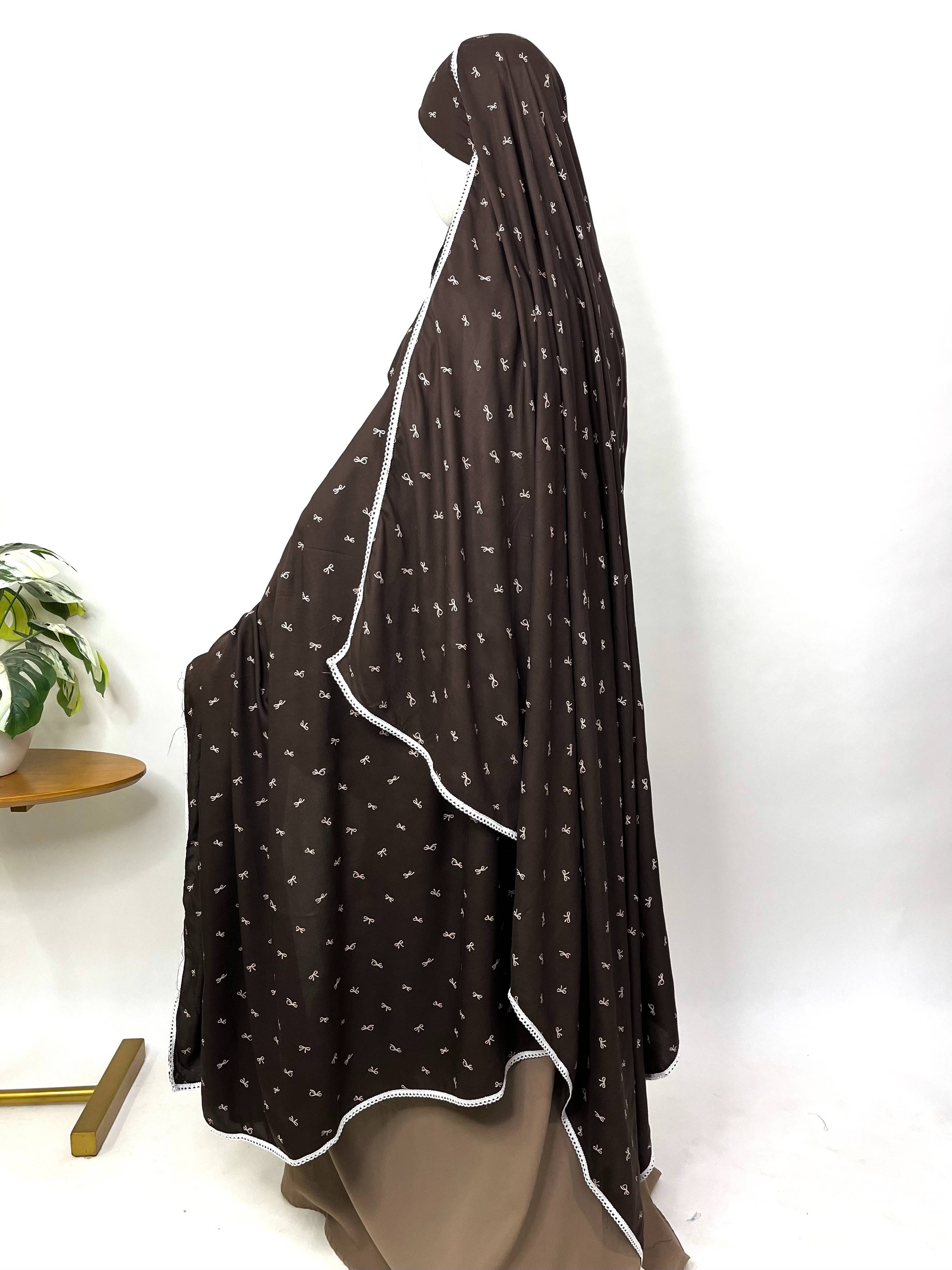 Embrace modest elegance with the Printed Pakeeza Chadar, a sleeveless front-open design that offers effortless layering for your everyday wardrobe. Featuring delicate side lace detailing that adds a touch of sophistication, this chadar combines style with practicality. The included nose piece ensures a secure, comfortable fit throughout the day. Perfect for those seeking graceful coverage without compromising on comfort or aesthetic appeal.