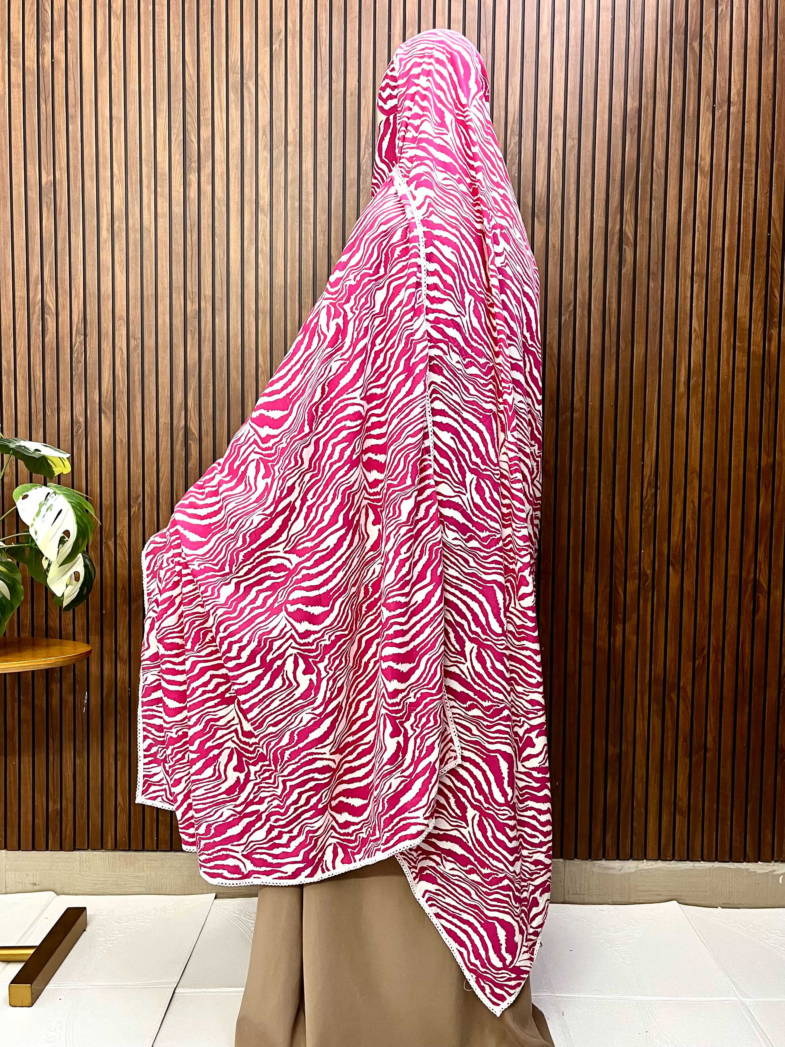 Embrace modest elegance with the Printed Pakeeza Chadar, a sleeveless front-open design that offers effortless layering for your everyday wardrobe. Featuring delicate side lace detailing that adds a touch of sophistication, this chadar combines style with practicality. The included nose piece ensures a secure, comfortable fit throughout the day. Perfect for those seeking graceful coverage without compromising on comfort or aesthetic appeal.
