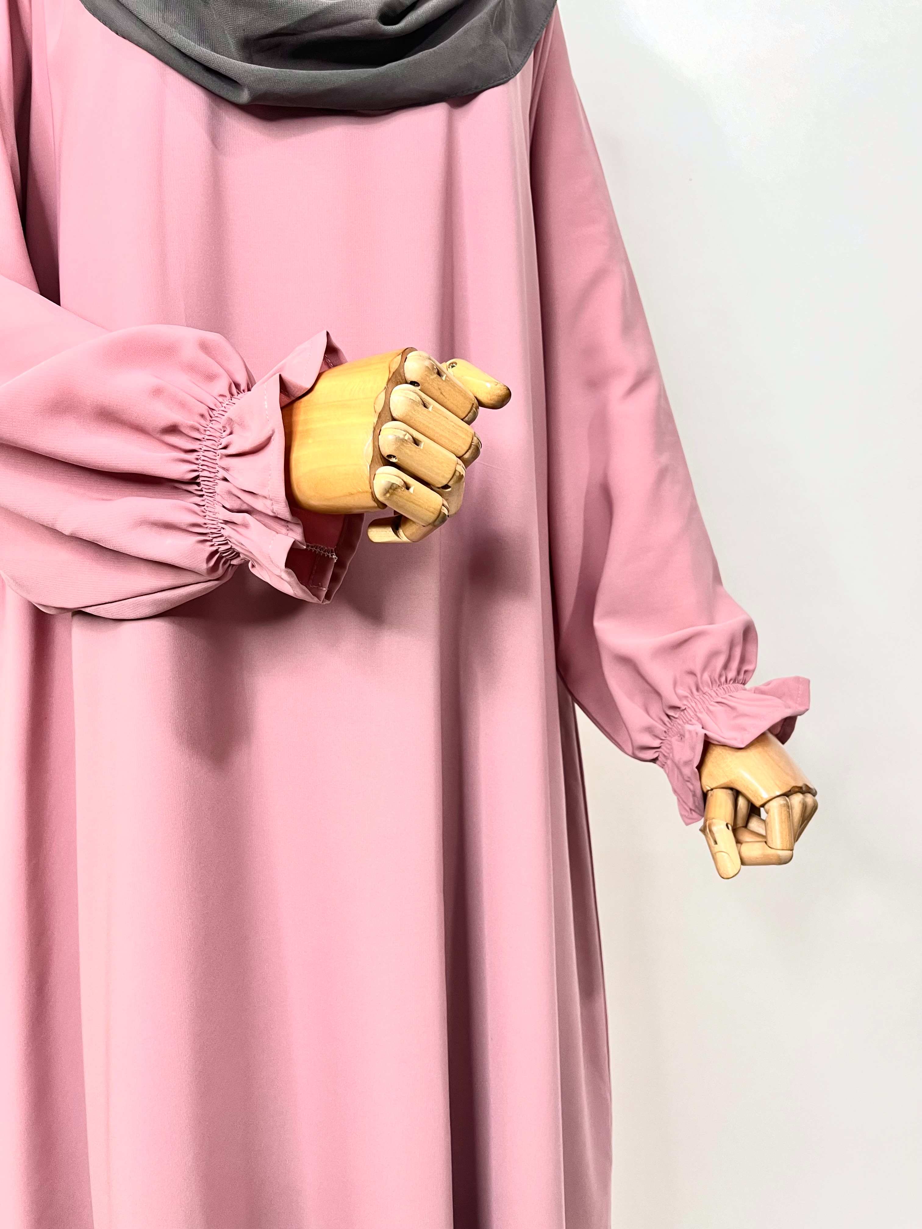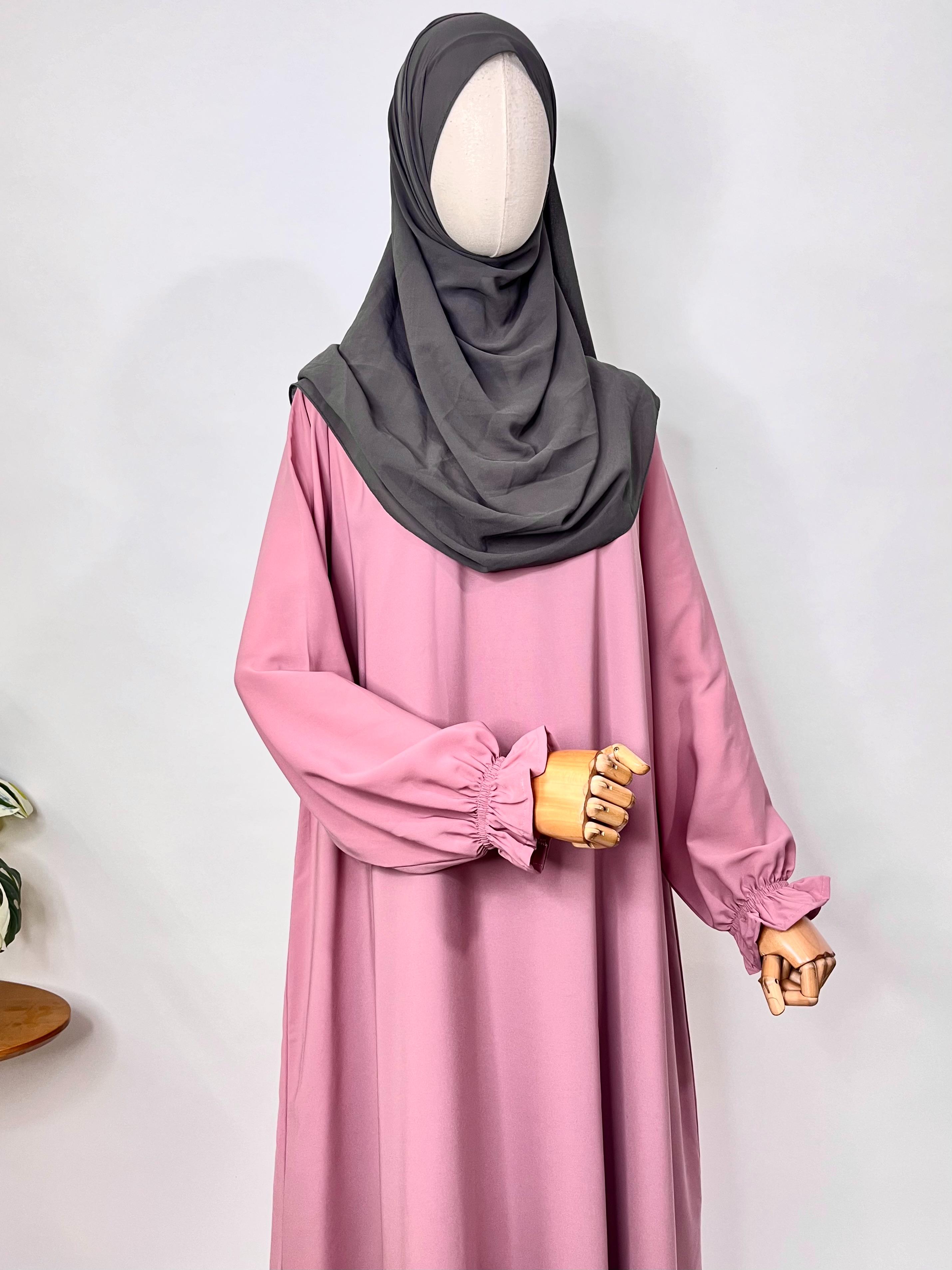 This Basic Abaya is designed with flowers sleeves that add a touch of elegance and femininity. The A-line silhouette creates a soft and flowy look, perfect for everyday wear or special occasions. Stay comfortable and stylish in this versatile piece.