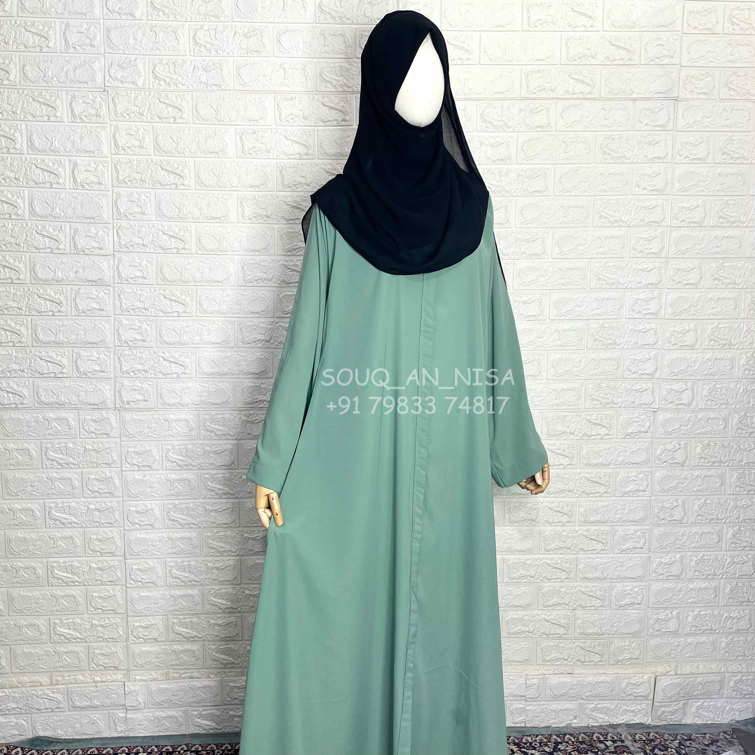 Stay covered and stylish with our Gray Plain Front Open Abaya. This solid abaya provides full coverage and is perfect for daily wear. Keep it comfortable and chic with this must-have wardrobe staple.