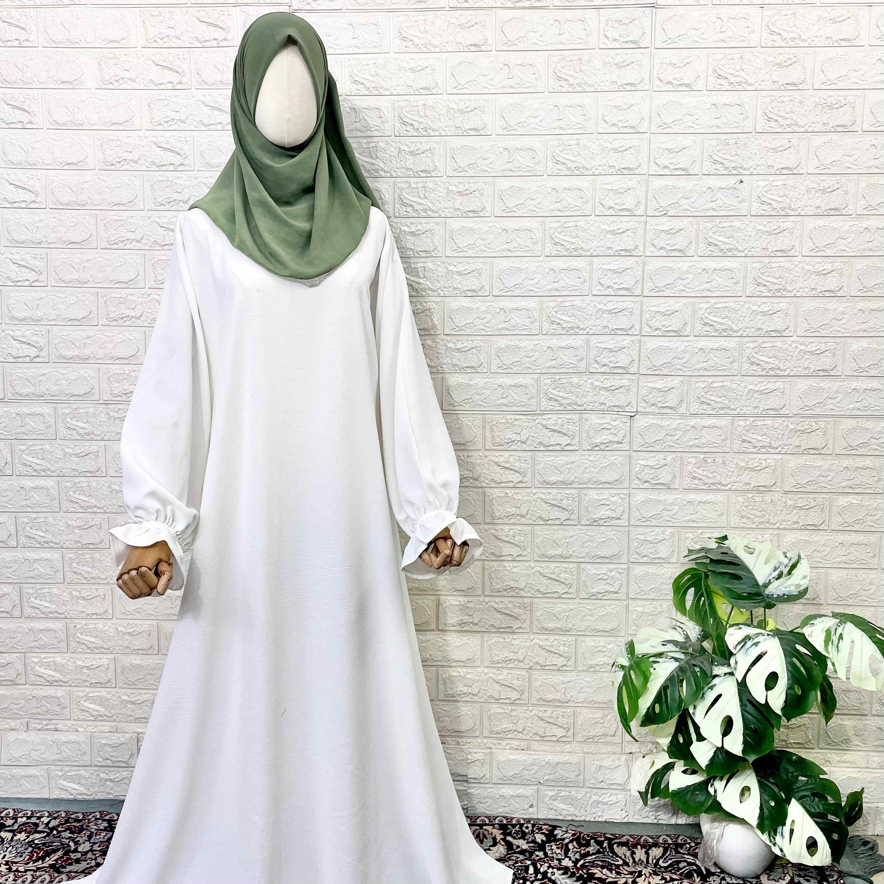 This White Basic Abaya is designed with flower sleeves that add a touch of elegance and femininity. The A-line silhouette creates a soft and flowy look, perfect for everyday wear or special occasions. Stay comfortable and stylish in this versatile piece.
