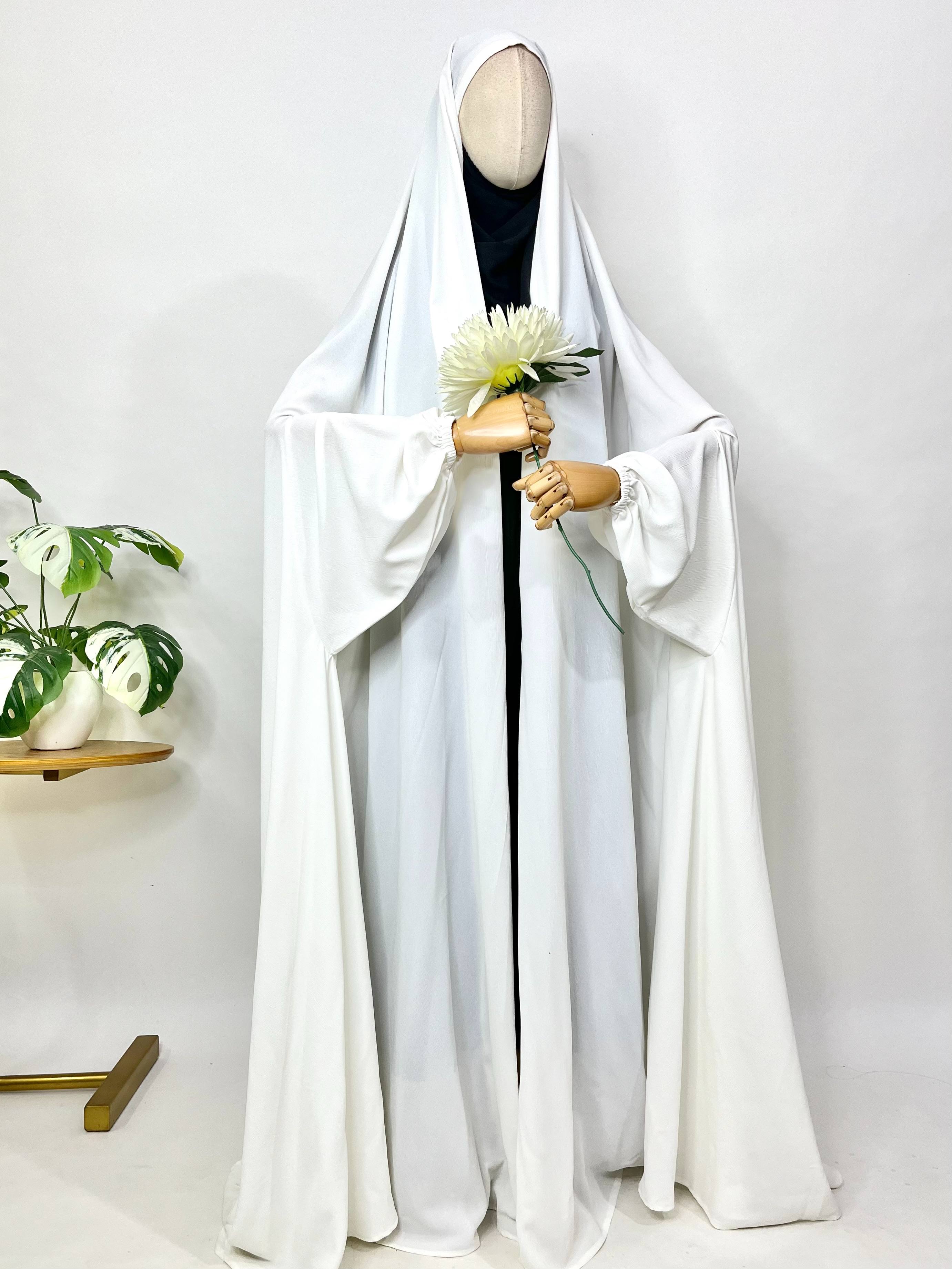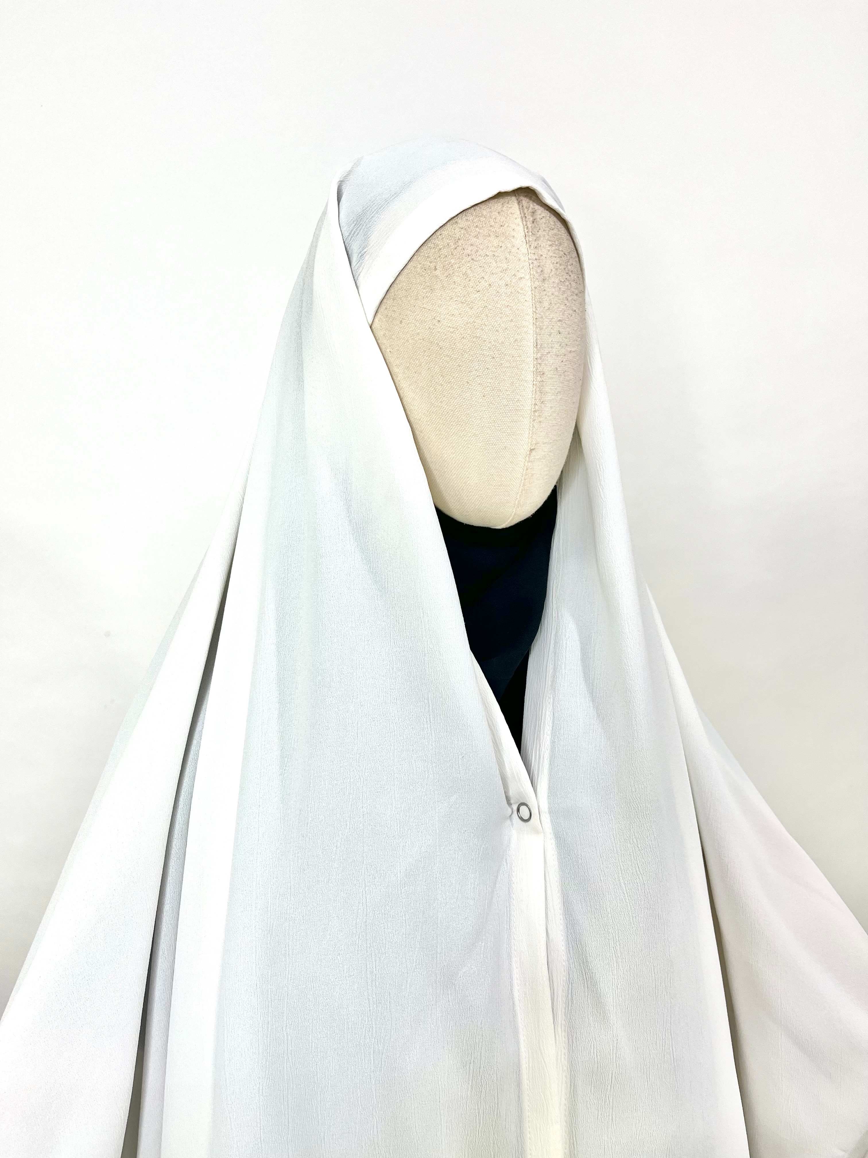 Effortlessly elevate your style with our Iraaqi Chadar. Made with cey crush fabric, it provides full coverage while being easy to wear. With sleeves and a quick one-minute preparation time, you'll be ready to look your best in no time. Perfect for hajj & umrah
